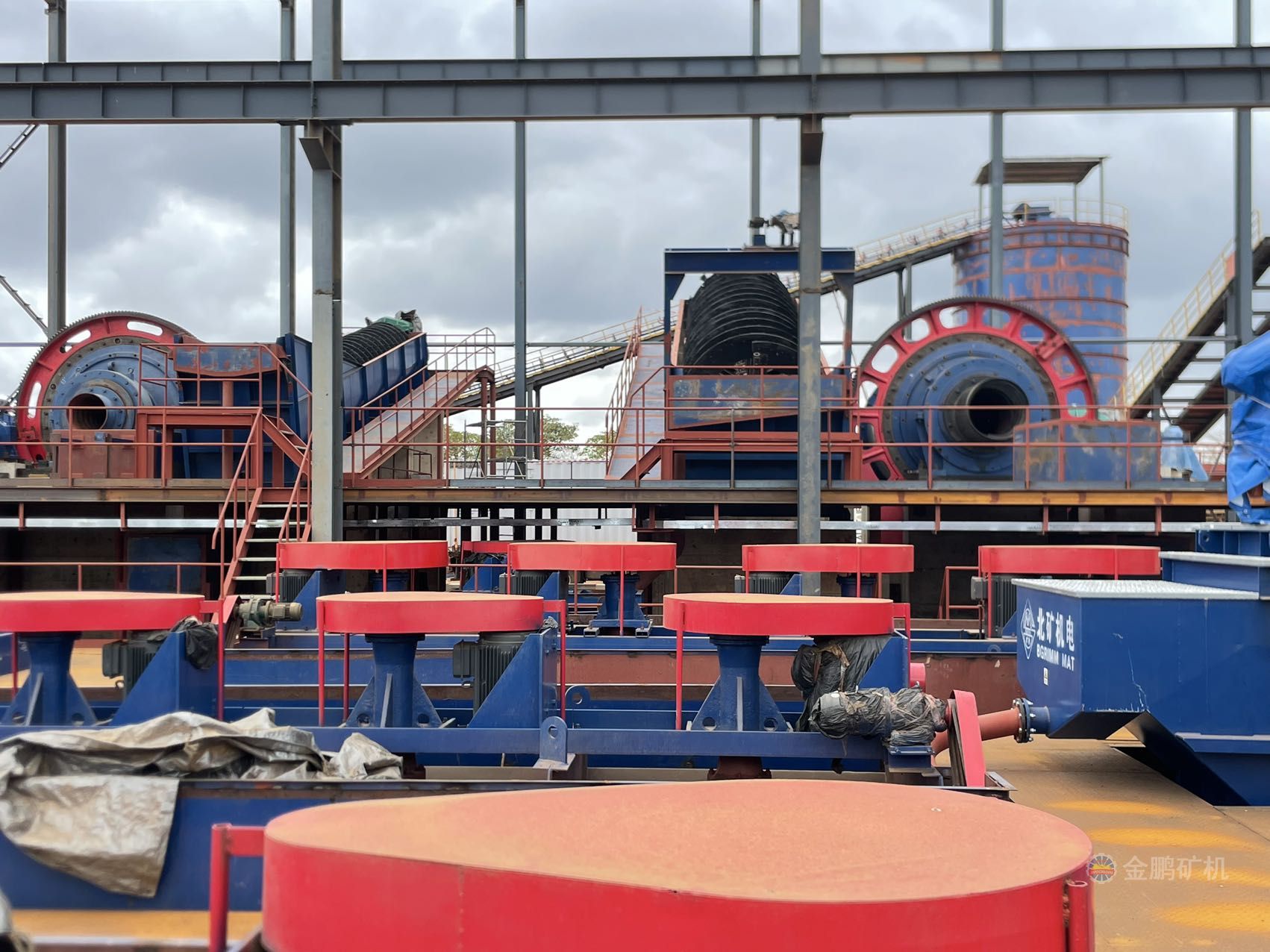 原礦經過兩段一閉路破碎系統,采用一段閉路磨礦流程,磨礦細度為-100目占40%,經過一次粗選一次掃選,粗精礦濃縮脫水后再磨,磨后精礦進行四磨六選,進入壓濾烘干系統,產品進行分目包裝系統,尾礦濕排至尾礦庫。