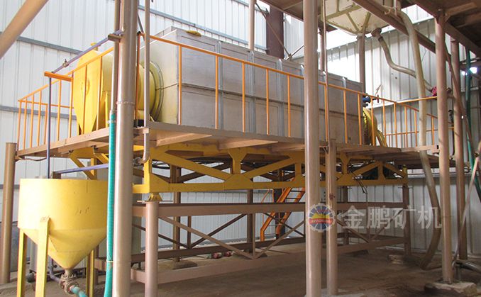 礦漿經(jīng)高效改造化濃密機濃縮,溢流水流入循環(huán)水池,底流經(jīng)膠泵打入到浸出槽,同時加入浸出藥劑,先經(jīng)過兩個浸出槽的預(yù)浸再進行活性炭吸附,活性炭浸出槽加入,逐步逆流串炭到前面的浸出槽中,含金達到要求時由用空氣提升器提到振動篩進行炭漿分離,礦漿回到浸出槽,載金炭送去解吸電解系統(tǒng)。