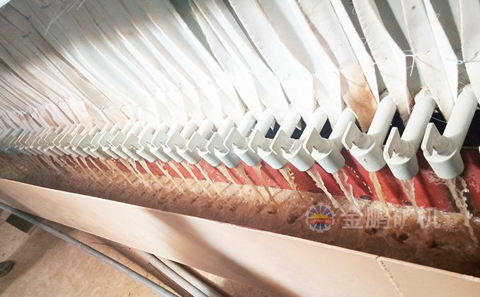 浸出槽尾礦經(jīng)緩沖槽由泵輸送到全自動廂式壓濾機,壓濾后的水流入循環(huán)水池以備循環(huán)利用,濾餅經(jīng)帶運輸機運到尾礦堆場,卡車將尾礦運到尾礦庫。